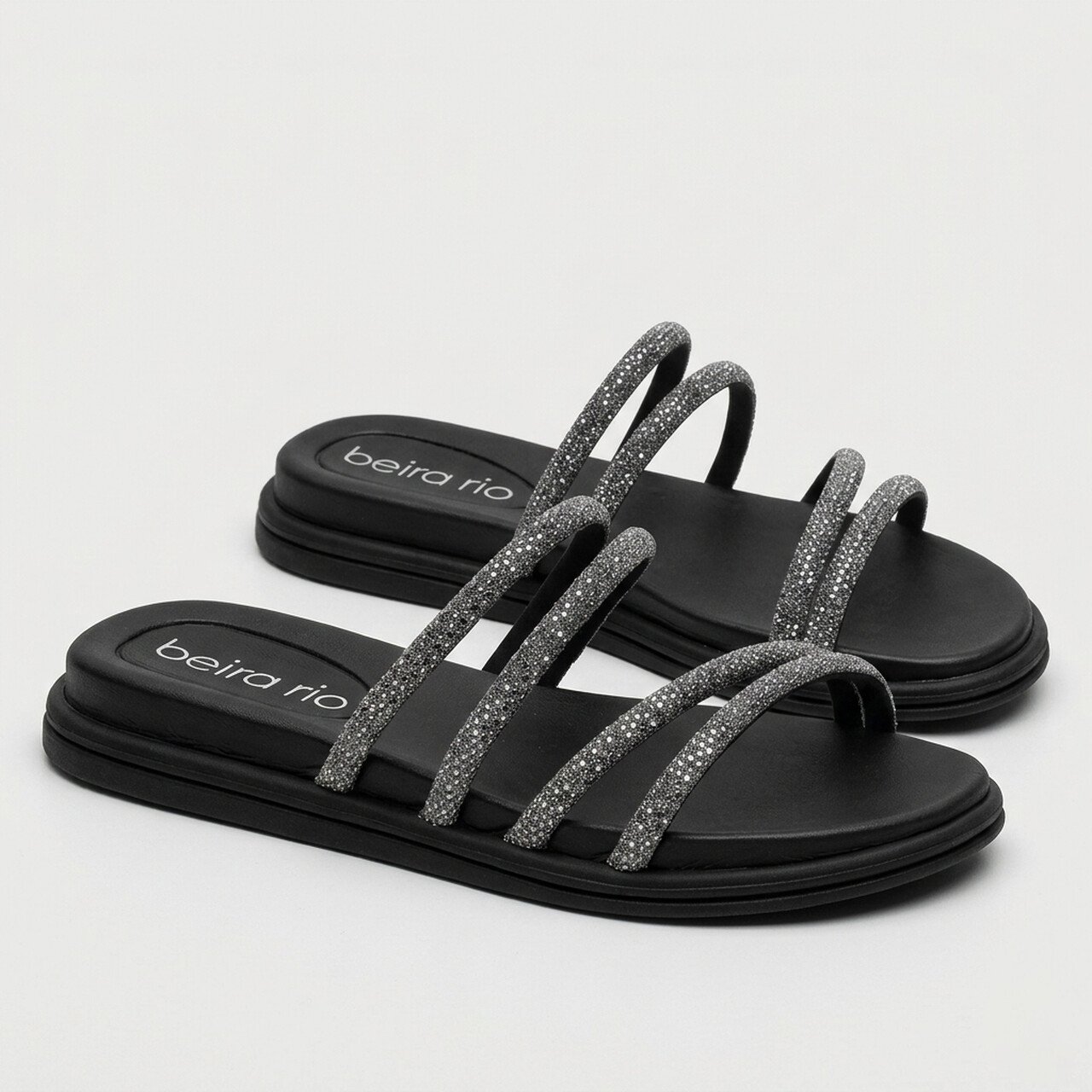 Papete Beira Rio Com Strass Preta
