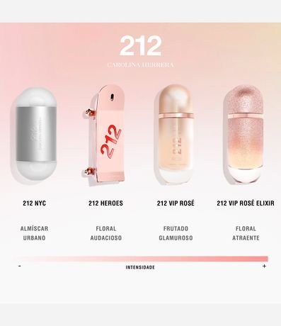 Ref: O glamour é uma característica exalante na nota principal do perfume 212 VIP Rosé. Já a nota de coração é a flor de pêssego, fator que garante leveza e tom frutado, enquanto as notas de fundo são amadeiradas, com almíscar branco e âmbar para equilibrar a doçura.