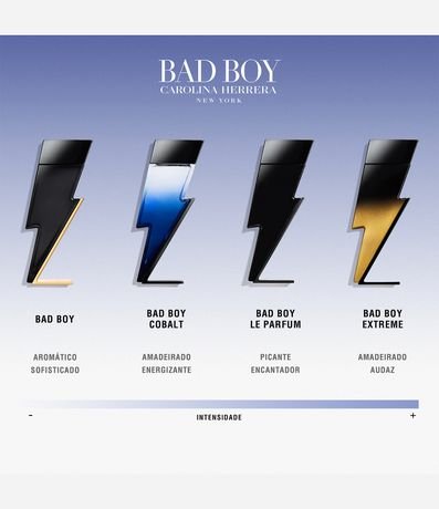 O frasco do Bad Boy Carolina Herrera é marcado por um raio que significa heroísmo em várias culturas, como a indiana e a nórdica. É uma essência marcada pelo imprevisível e a singularidade, afinal, um raio sempre será diferente do outro. É uma ótima opção para dar de presente, com combinação de acessórios, por exemplo.