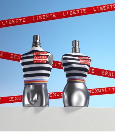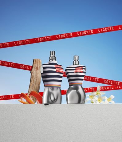 O manifesto de street art da nova edição do Perfume Le Male Pride eau de toilette colecionador masculino Jean Paul Gaultier, Vamos marchar juntos! Da passarela para a rua, sempre a mesma mensagem: “Acostume-se!” Você conseguiu! Jean Paul não terminou de celebrar nossas diferenças. Para o desfile, sua camiseta branca traz estampa de street art de seu desfile de moda de 1994. Este frasco orgulhoso, corpo cromado e torso icônico compartilham os mesmos valores e a mesma Eau de toilette floral amadeirada cítrica inclusiva projetada para todos. Vamos celebrar nossa liberdade!