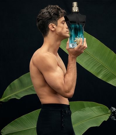 O frasco nu. O frasco viril. Do preto laqueado ao verde transparente, Le Beau Le Parfum intensifica o degradê do seu torso musculoso e de sua fragrância. Vestindo apenas uma folha de parreira dourada. Como resistir à tentação?