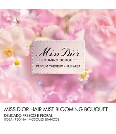 Ref: O Miss Dior Blooming Bouquet Hair Mist é apresentado em um frasco de vidro com efeito fosco, decorado com o icônico motivo pied-de-poule da Maison. A inspiração couture se estende até o rótulo, que remete à textura de tecido.