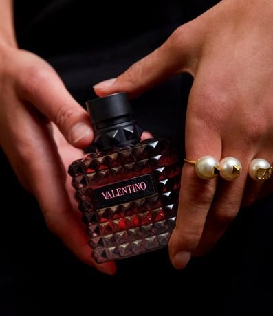 O frasco presta homenagem ao icônico Valentino Rockstud. Esse design piramidal arrojado, inspirado na arquitetura romana, é uma assinatura da Maison Valentino. Parte da iconografia da moda de Valentino e um símbolo de Roma, onde embeleza as portas e paredes da cidade, o Rockstud é um símbolo transformador, que leva uma bolsa ou um sapato do clássico ao instantaneamente atual. O frasco com as texturas de rocha é ainda mais moderno graças ao contraste do couro preto com o rosa vivo. Porque em Valentino, o rosa é punk e poético, romântico, mas também ousado e audacioso. Não há regras.