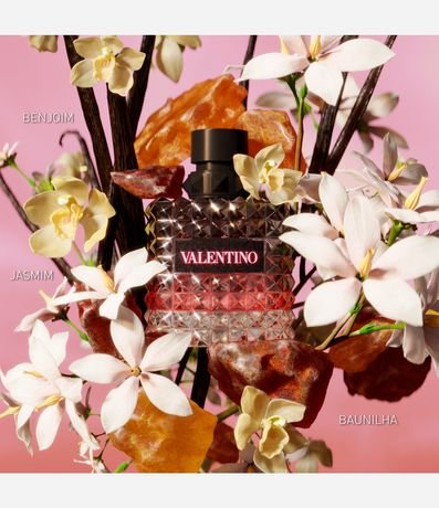 O frasco presta homenagem ao icônico Valentino Rockstud. Esse design piramidal arrojado, inspirado na arquitetura romana, é uma assinatura da Maison Valentino. Parte da iconografia da moda de Valentino e um símbolo de Roma, onde embeleza as portas e paredes da cidade, o Rockstud é um símbolo transformador, que leva uma bolsa ou um sapato do clássico ao instantaneamente atual. O frasco com as texturas de rocha é ainda mais moderno graças ao contraste do couro preto com o rosa vivo. Porque em Valentino, o rosa é punk e poético, romântico, mas também ousado e audacioso. Não há regras.