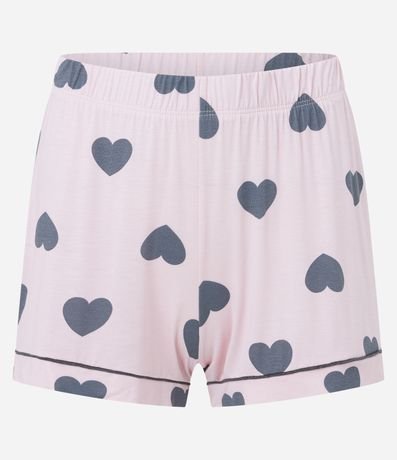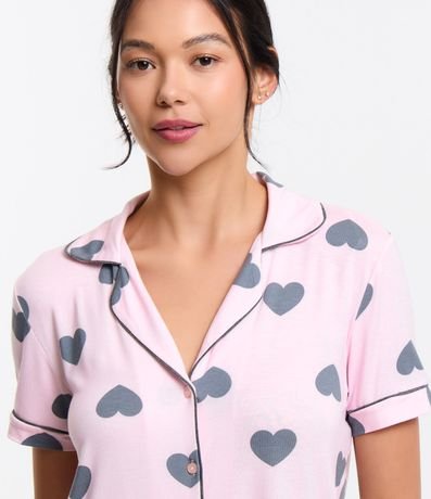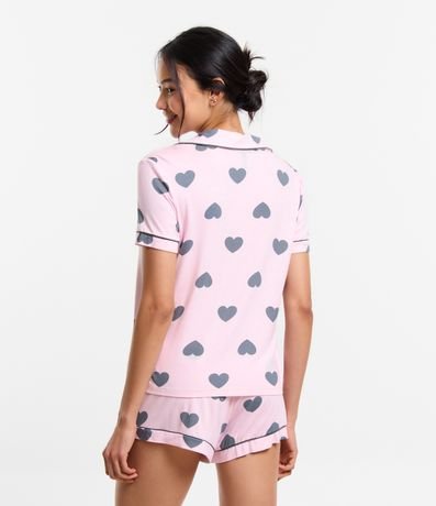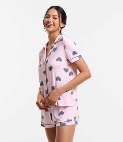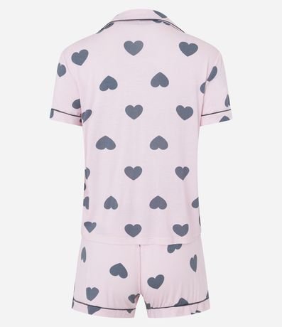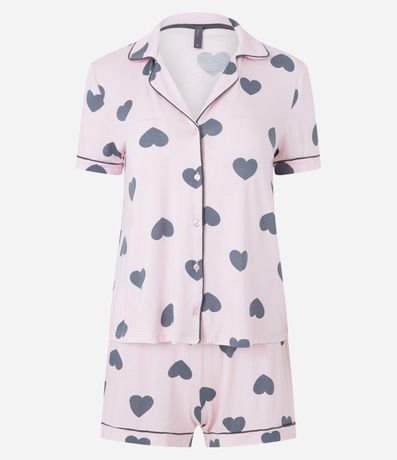 Ref: Pijama feminino no modelo americano, com gola americana, mangas curtas e fechamento por botões. O shortinho possui cós elástico, e ambos possuem estampa de corações.