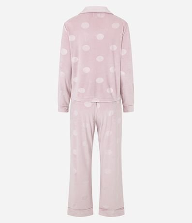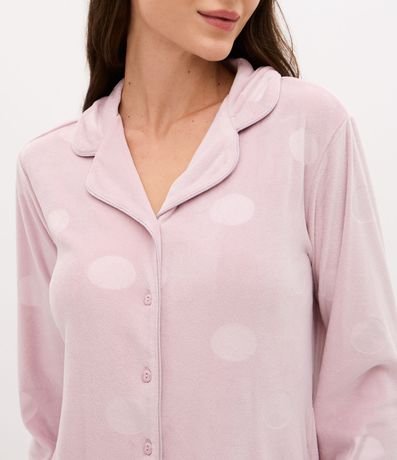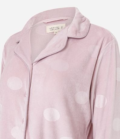 Ref: Pijama americano, longo confeccionado em plush com abotoamento fontal e estampa de bolinhas.