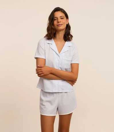Pijama Americano Short Doll Texturizado e Estampado de Florzinhas