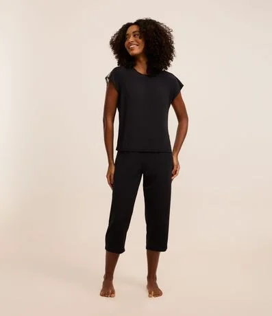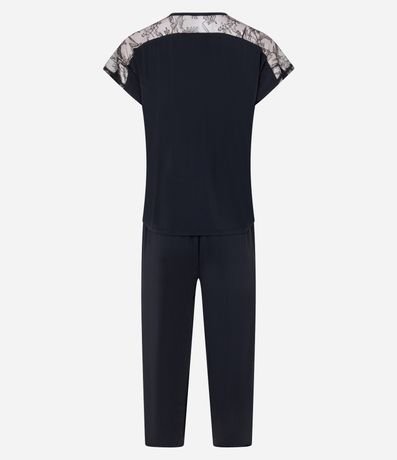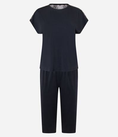 Ref: Pijama em viscolycra, com 02 peças. Blusa com mangas curtas detalhes em renda e calça capri super confortável. O modelo alia praticidade e estilo, proporcionando leveza e muito conforto durante o uso.