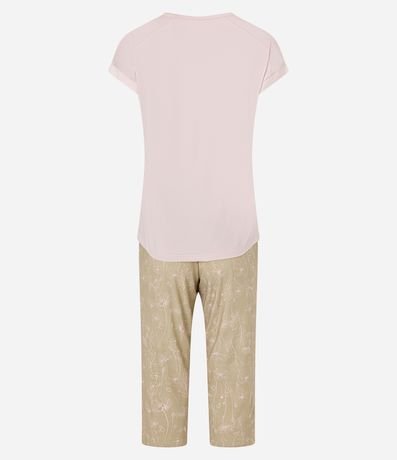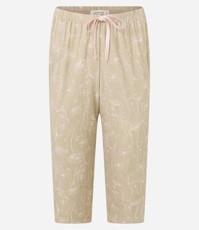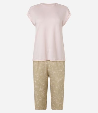 Ref: Conjunto de pijama de malha ideal para as noites de meia estação! A blusa tem mangas curtas, detalhes de cetim e superfície sem estampa; e a calça é capri (mais curta), estampada de flores e com amarração na cintura.