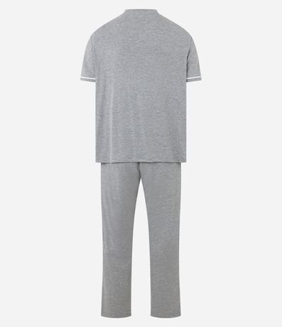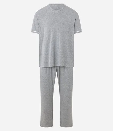 Ref: Pijama longo masculino em meia malha mescla, confeccionado com viscose e algodão certificado em processo mais sustentável.