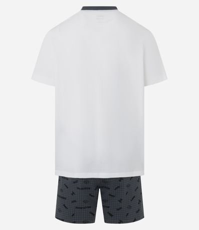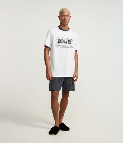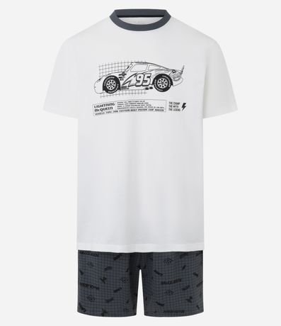 Ref: Conjunto de pijama masculino, camiseta com manga curta, gola redonda; e bermuda com cós elástico, ambos com estampa do filme Carros.
