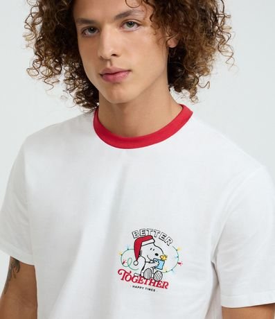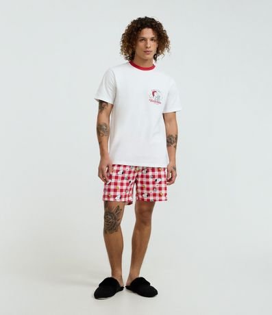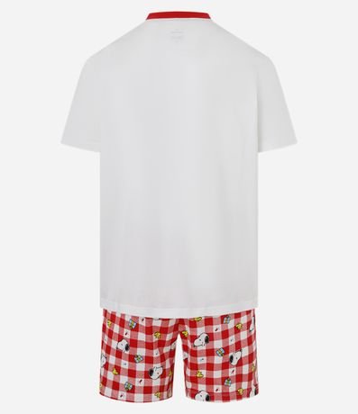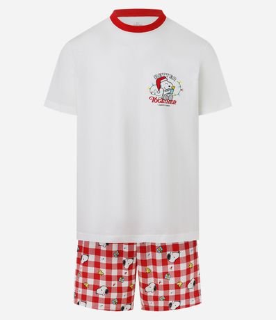 Ref: Conjunto de pijama masculino, camiseta com manga curta, gola redonda, estampa localizada de Mini Me Peanuts, bermuda com cós elástico, estampado com Mini Me Peanuts, modelo curto que permite conforto na hora do descanso.