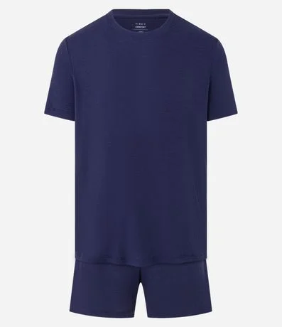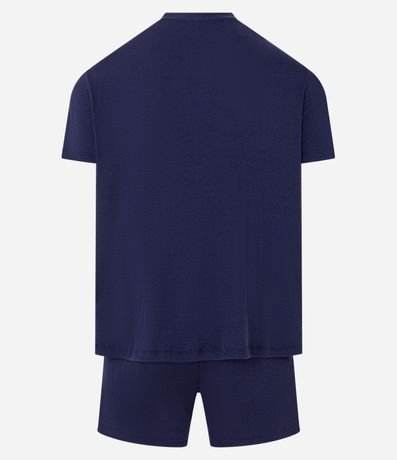Conjunto de pijama masculino, modelo curto confeccionado em algodão mais sustentável, com 01 camiseta de mangas curtas e 01 bermuda com cós elástico. Contendo camiseta e bermuda sem estampa.