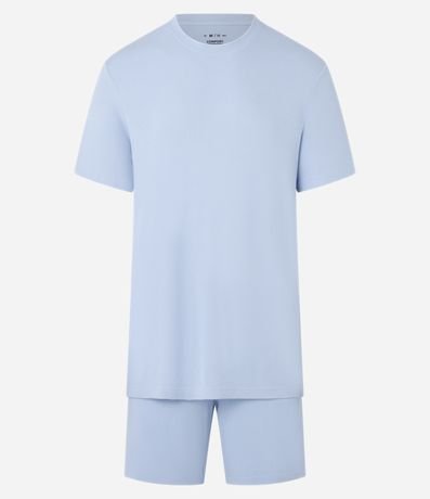 Ref: Conjunto de pijama masculino, modelo curto confeccionado em viscose, com 01 camiseta de mangas curtas e 01 bermuda com cós elástico. Contendo camiseta e bermuda sem estampa, canelados.