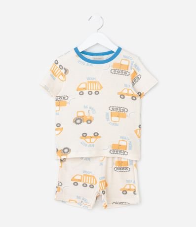 Ref: Conjunto de pijama infantil curto, com manga curta e gola contrastante. Possui estampa de carrinhos.