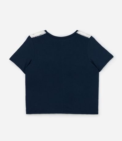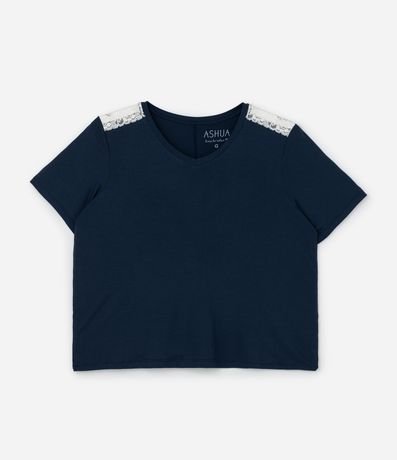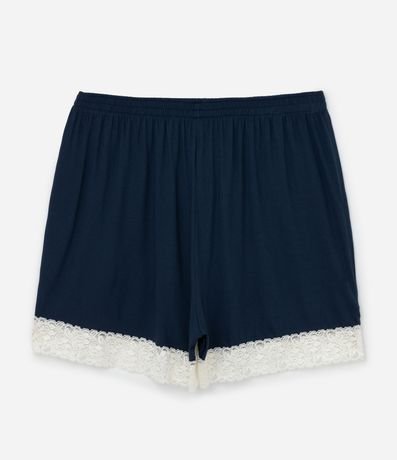Conjunto de pijama confeccionado em viscolycra. São duas peças: blusa manga curta com renda no ombro; e short com cintura elástica e renda na barra.
