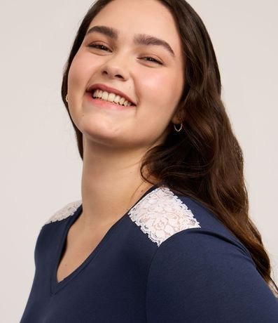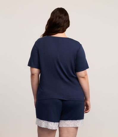 Pijama Curto em Viscolycra com Detalhe de Renda Contrastante Curve & Plus Size