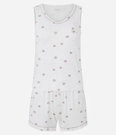 Ref: Conjunto de pijama curto feminino, confeccionado em viscolycra, com regata e shortinho. As peças possuem detalhe em viés e estampa floral.