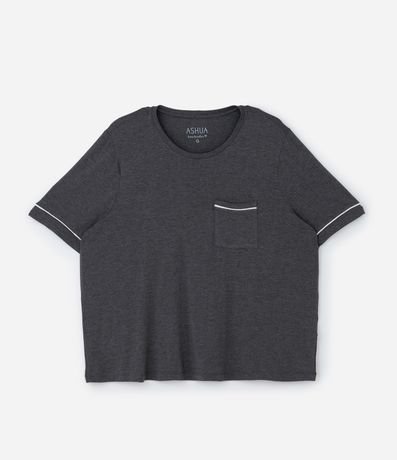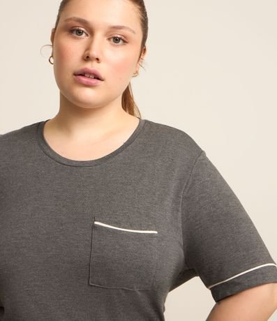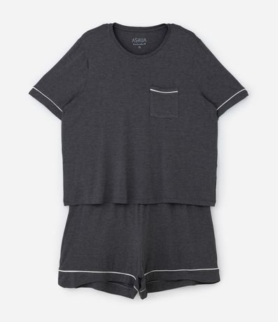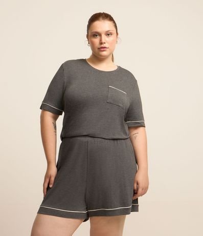 Ref: Conjunto de pijama de viscose com duas peças -- camiseta com gola redonda, mangas curtas e bolsinho no peito; e short com cintura elástica. As peças têm detalhe de vies contrastante.