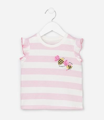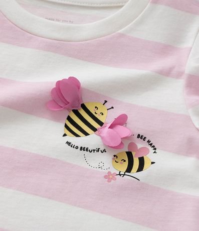 Ref: Pijaminha infantil confeccionado em algodão mais sustentável através de boas práticas ambientais, no modelo curto. Possui blusa com gola redonda, frufrus nas cavas e com estampa listrada e de abelha. Short com cós elástico, cordão para amarração e texturizado.