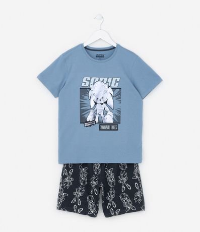 Pijama Curto Infantil com Estampa do Sonic - Tam 5 a 14 Anos