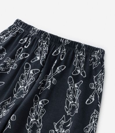 Pijama infantil composto de camiseta e bermuda em algodão. Possui estampa do Sonic e mangas curtas.