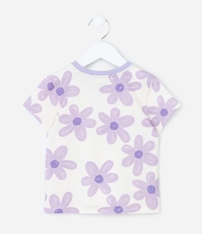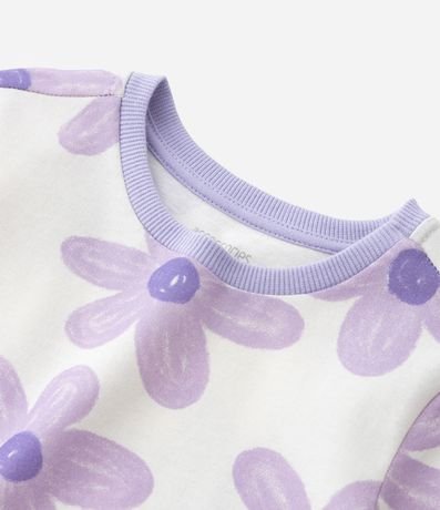 Ref: Pijama infantil confeccionado em algodão mais sustentável, no modelo curto. Possui blusa com gola redonda, em ribana, manga curta, estampa floral e short de cós elástico, com lacinho sem estampa e frufru na barra.
