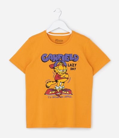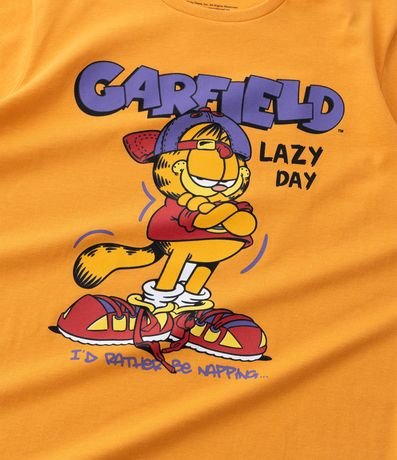 Ref: Conjunto de pijama confeccionado em algodão mais sustentável através de boas práticas ambientais, no modelo curto. São duas peças: camisetinha de manga curta com gola redonda e estampa frontal; e short com cintura elástica e estampada. Ambos com a estampa do gato Garfield.