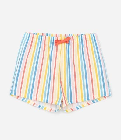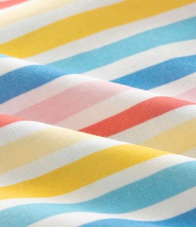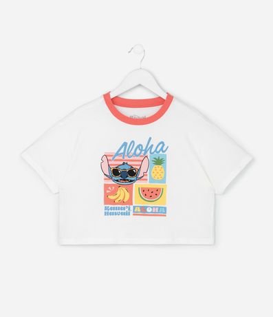 Ref: Conjunto de pijama confeccionado em algodão mais sustentável através de boas práticas ambientais, no modelo curto. São duas peças: camiseta com gola redonda contrastante, manga curta e estampa do Stitch; e short com cintura elástica, com cordão e estampa de listras.