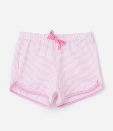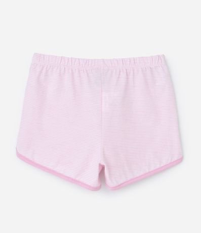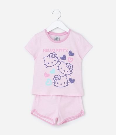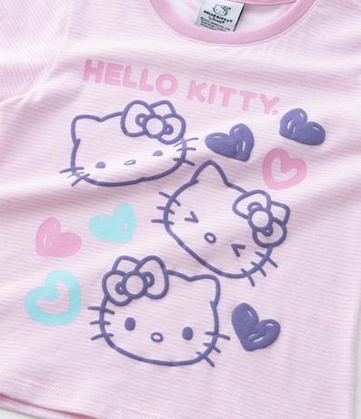 Ref: Pijama infantil confeccionado em algodão mais sustentável, no modelo curto. Possui blusa, gola redonda, contrastante, manga curta, estampa e lettering "Hello Kitty" e short, cós elástico, com lacinho. Ambos com estampa de listras.