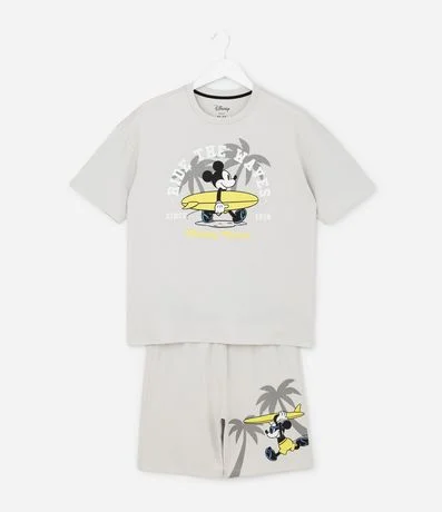 Ref: Conjunto de pijama confeccionado em algodão mais sustentável através de boas práticas ambientais, no modelo curto. São duas peças: camiseta, gola redonda, manga curta e estampa frontal; e short com cintura elástica e estampado. Ambos com a estampa de praia e Mickey Mouse.