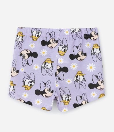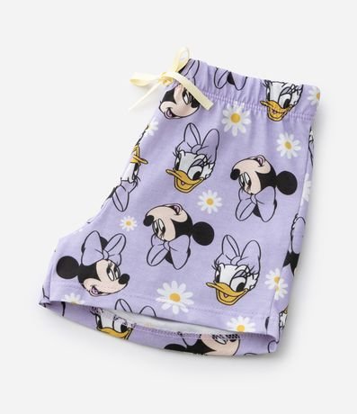 Conjunto de pijama confeccionado em algodão mais sustentável através de boas práticas ambientais, no modelo curto. São duas peças: camisetinha de manga curta, gola redonda e estampa frontal; e short com cintura elástica e estampado. Ambos com a estampa da Minnie e da Margarida.