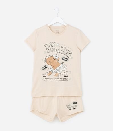 Pijama Curto Infantil em Algodão com Estampa de Capivara - Tam 7 ao 14 Anos