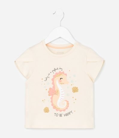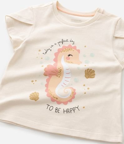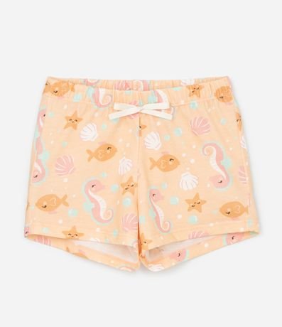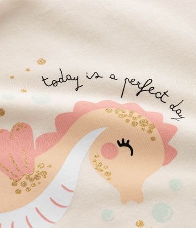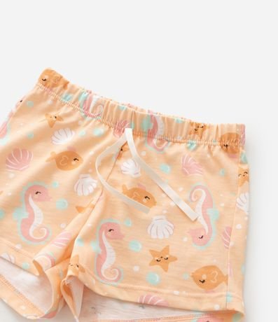 Ref: Pijama infantil confeccionado em algodão mais sustentável através de boas práticas ambientais, no modelo curto. Composto por blusa com gola redonda, manga curta, short cós elástico, com cordão. Ambos com estampa de cavalo marinho.