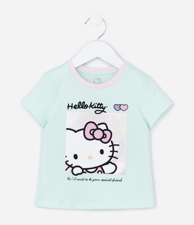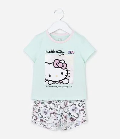 Ref: Pijama infantil confeccionado em algodão certificado BCI e boas práticas ambientais. Modelo com camiseta manga curta e shorts estampados Hello Kitty, garantindo conforto, fofura e moda responsável para noites tranquilas.