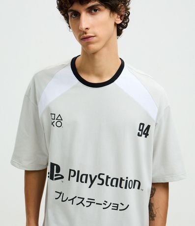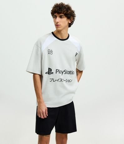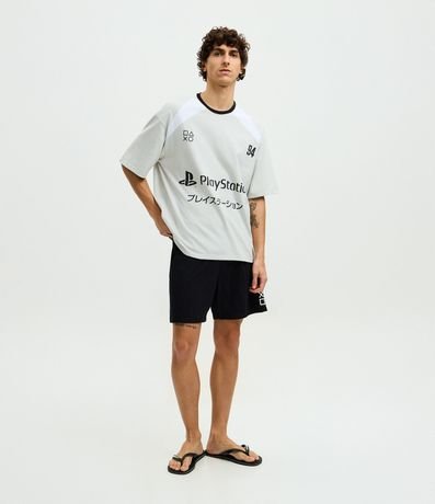 Ref: Pijama curto masculino adulto confeccionado em meia malha de algodão mais sustentável, composto por camiseta de manga curta com gola redonda, modelagem boxy e estampa frontal licenciada PlayStation, acompanhada de short liso com cós elástico, ideal para conforto e estilo nos momentos de descanso.