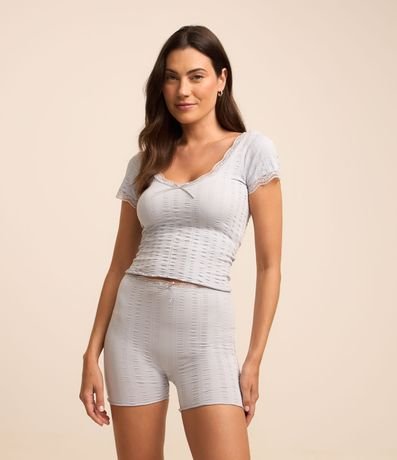 Ref: Pijama curto feminino seamless, com decote V, textura e caimento levinho.