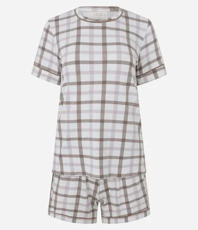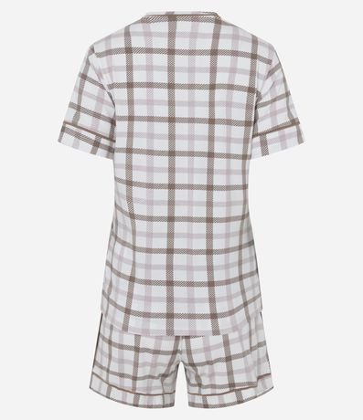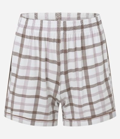 Ref: Conjunto pijama composto por blusa de manga curta e short em viscolycra macia, com estampa xadrez e detalhes de pippings. Conjunto confortável e leve para o dia a dia, ideal para momentos de descanso com estilo. Peça confeccionado em viscose certificada, mais sustentável.