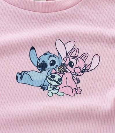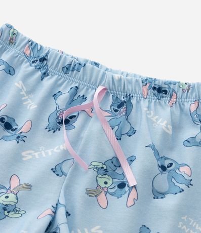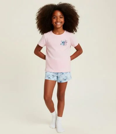 Ref: Conjunto de pijama infantil confeccionado em algodão certificado através de boas práticas ambientais. Possui 02 peças: blusa texturizada com manga curta e gola redonda; short com cós elástico e amarração. Todo estampado com o personagem Stitch e Angel.