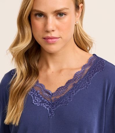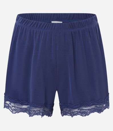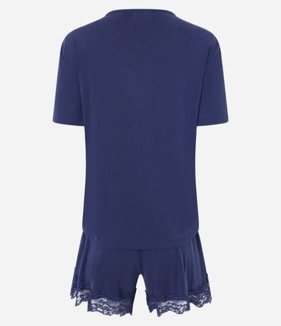 Ref: Conjunto de pijama curto confeccionado com modal e seguindo boas práticas ambientais. São duas peças: blusa manga curta com gola V; e short com cintura elástica. As duas peças têm detalhes de renda.
