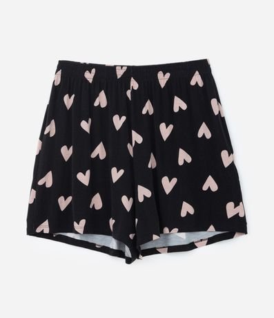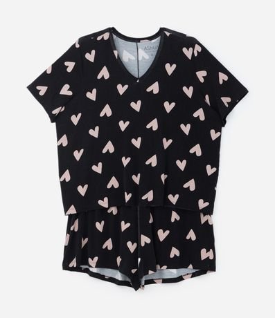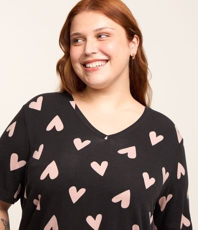 Ref: Conjunto de pijama plus size confeccionado em viscose mais sustentável e estampado de corações. São duas peças: blusa com gola V e mangas curtas; e short com cintura elástica.