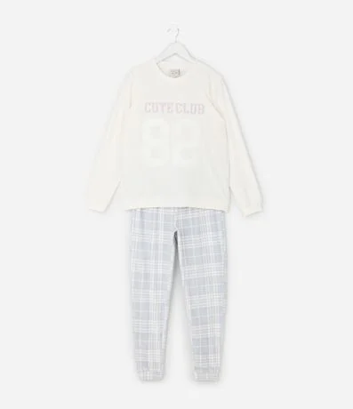 Pijama Infantil Canelado College com Calça Xadrez – Tam 7 a 16 Anos