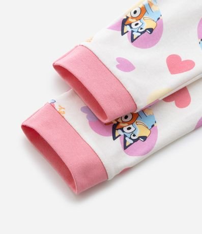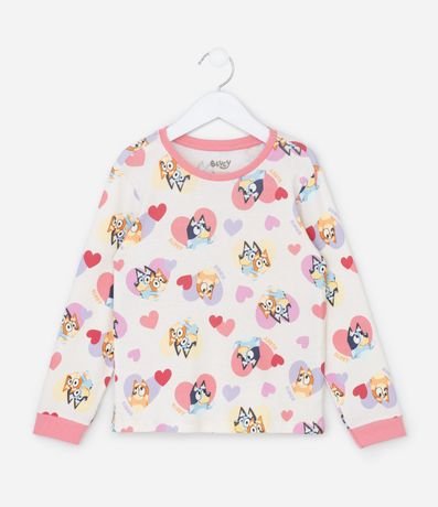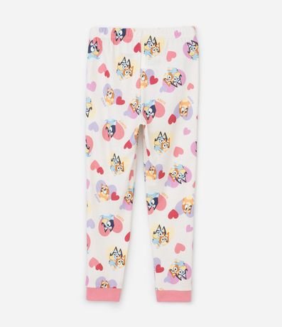 Ref: Conjunto de pijama infantil confeccionado com algodão mais sustentável: uma blusa manga longa e uma calça, com punho e barra ajustada e estampa do Bluey e Bingo com corações, super fofo!