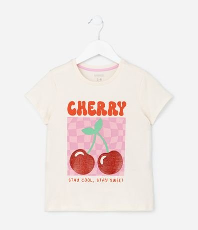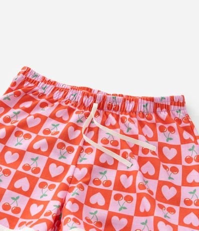Ref: Conjunto de pijama infantil curto, confeccionado em algodão, composto por blusinha de mangas curtas e short com elástico e lacinho no cós. A blusa tem estamparia de par de cerejas com lettering "cherry" acima, enquanto o short tem estampa xadrez com desenhos de cerejas e corações nos blocos. Este produto possui algodão certificado BCI em sua composição, além de ter sido produzido através de processos mais sustentáveis com boas práticas ambientais, sendo ambientalmente mais responsável.