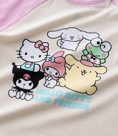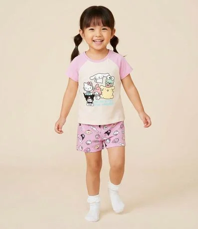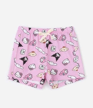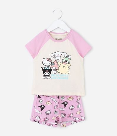 Ref: Pijama infantil confeccionado em meia malha de algodão certificado BCI, composto por blusa de manga curta com estampa localizada dos personagens Hello Kitty and Friends, criação clássica da Sanrio. Acompanha short com cós elástico, lacinho decorativo e estampa fullprint por toda a superfície.