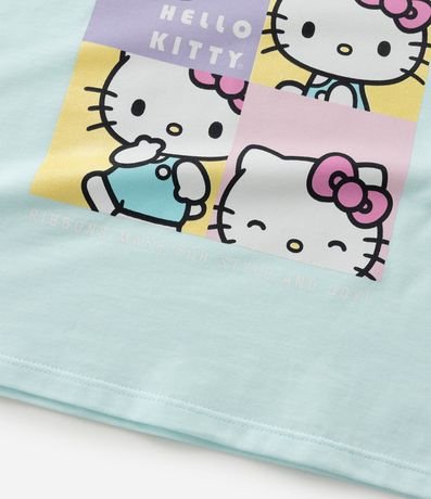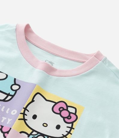 Ref: Pijaminha infantil confeccionado em algodão mais sustentável através de boas práticas ambientais. Possui camiseta de gola redonda, manga curta, com estampa da Hello Kitty, modelo cropped e calça com elástico, estampa de listras, modelo wide leg.