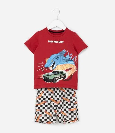 Ref: Pijama infantil confeccionado em algodão de material mais sustentável. Possui camiseta de mangas curtas e bermuda com elástico no cós, ambos com estampa Hot Wheels.
