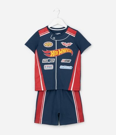 Ref: Conjunto de pijama infantil confeccionado em algodão mais sustentável, com duas peças: camiseta e bermuda. De mangas curtas e com cós elástico, possui estampa que imita uniforme da Hot Wheels.
