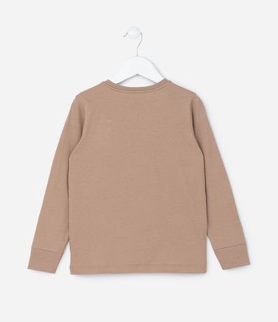 Conjunto infantil de pijama de algodão mais sustentável, com duas peças: camiseta com mangas longas e calça com cintura elástica. A peça possui diferencial "brilha no escuro".