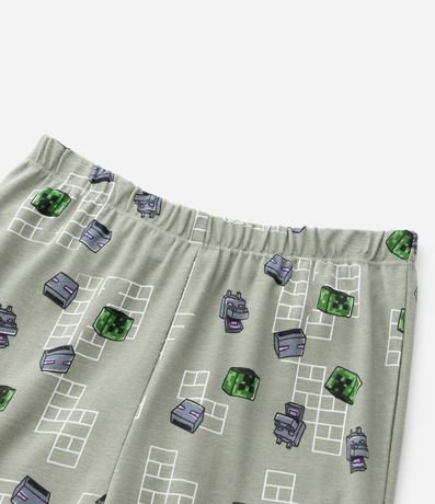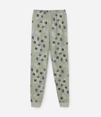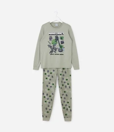 Ref: Pijama infantil em meia malha apresenta blusa de manga longa e calça confortável, confeccionadas em algodão certificado BCI e boas práticas ambientais. Traz estampa inspirada no universo de blocos do Minecraft, criando visual divertido que acompanha a imaginação e as aventuras dos pequenos.